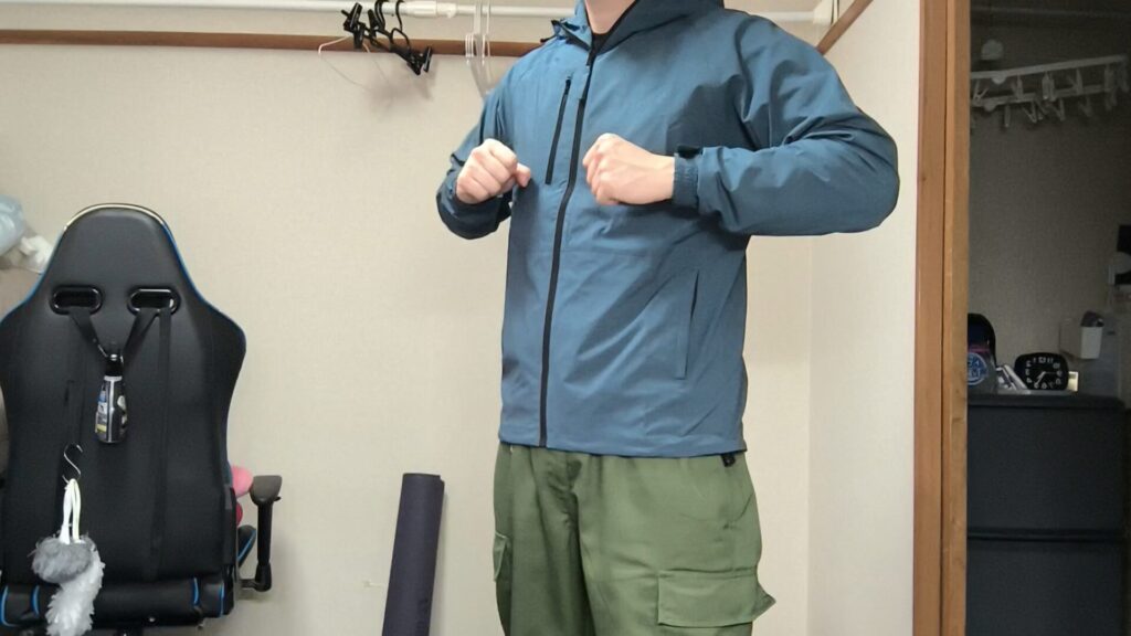 まずはシンプルに生地がしっかりしていて、防風性がある。