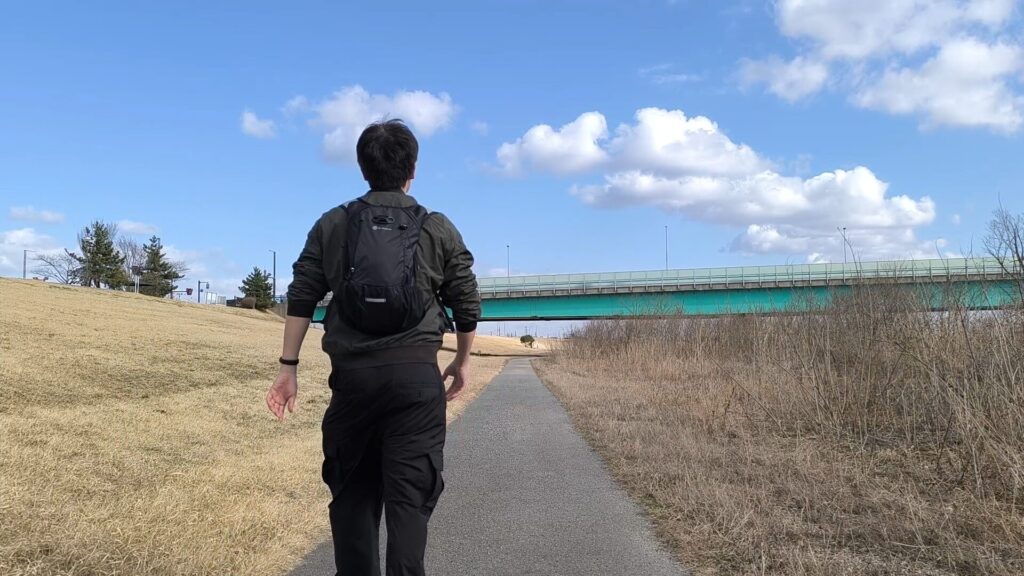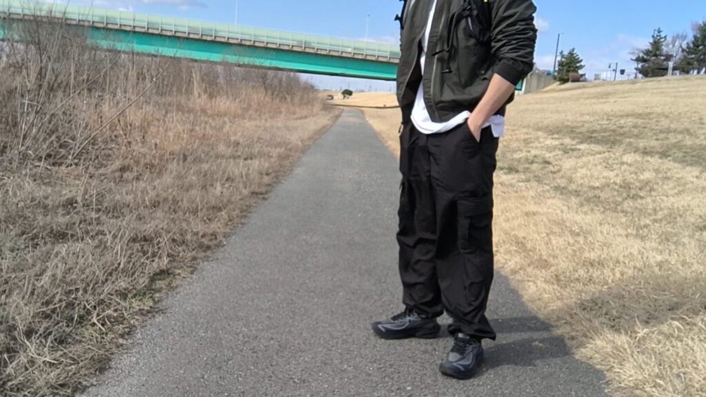 今回は同じワークマンのシン・呼吸するロングTシャツとライニングメッシュナイロンパンツでテック系に決めてみた。