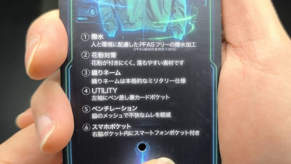 つまり先ほどの撥水や花粉リリース機能だけではなく、着心地と耐久性も追及した最高の商品である。