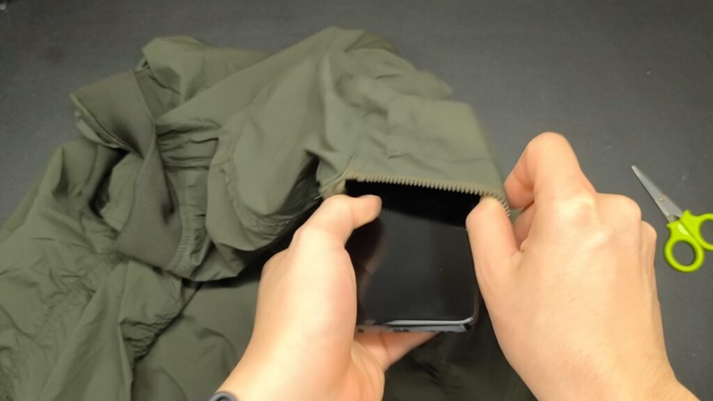 右のポケットにはスマホポケットが分かれているので、ここにスマホを入れるのがベストだ。