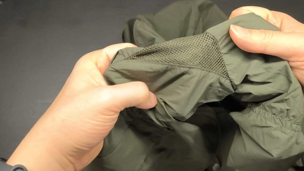 脇にはメッシュ生地で通気性を良くするベンチレーション機能もあり。