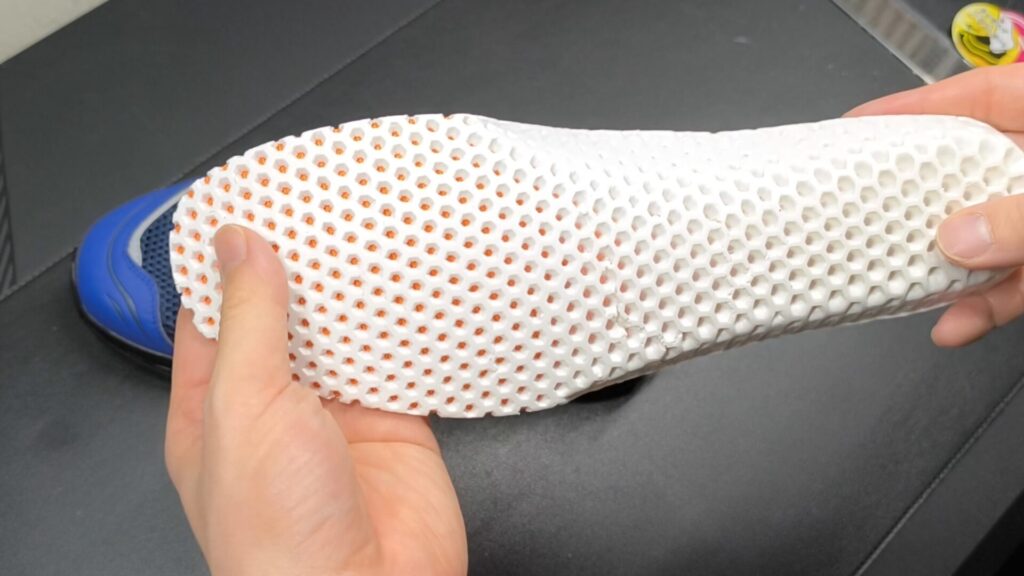 インソールの裏は発泡スチロールで、多くの小さい空間がある。