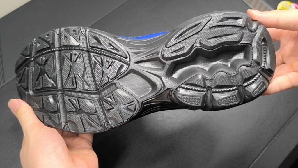 後ろから見ると、かかと部分のソールがかなり特殊な形になっている。