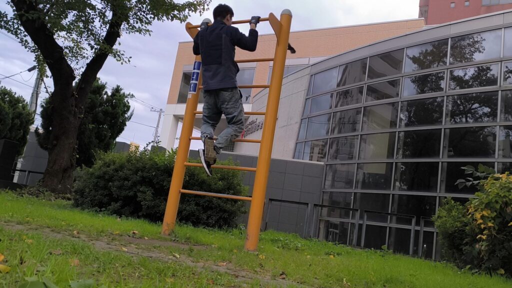 公園の懸垂棒は、ジムの懸垂器具と違い持ち手が鉄なので冷たいし、手の豆がかなり痛くなる。